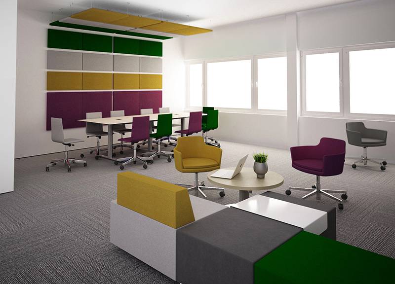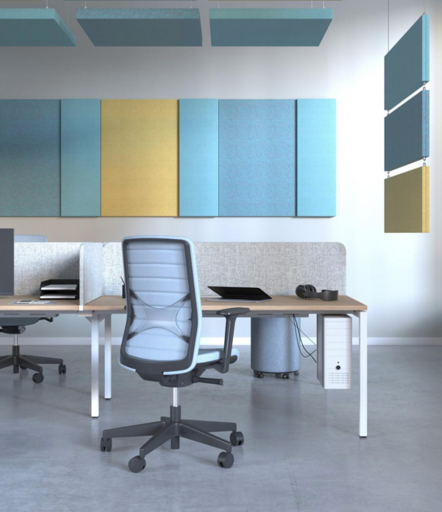MODUS seinä-/kattopaneeli on ääntä vaimentava, pehmeä sermi, jolla voit luoda toimistoosi rauhaa, tyylikkyyttä ja persoonallisen ilmeen. MODUS seinä-/kattopaneeli minimoi kaikuja ja melua sekä parantaa työrauhaa. Lisäksi paneeleita yhdistelemällä voit luoda yritysilmeeseesi sopivia taideteoksia toimistoosi.