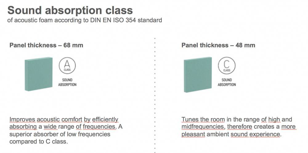 MODUS LIGHT seinä-/kattopaneelin sisällä on ääntä vaimentavaa materiaalia ja päälikangas on pehmeää villaa tai polyesteriä. Kangas- ja värivaihtoehtoja on useita, valitse omasi!