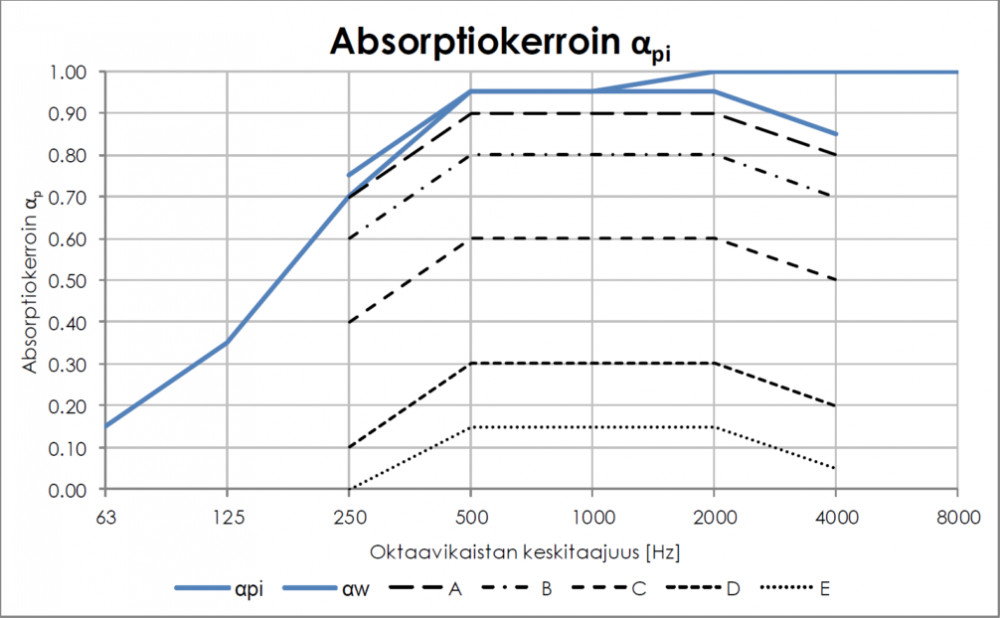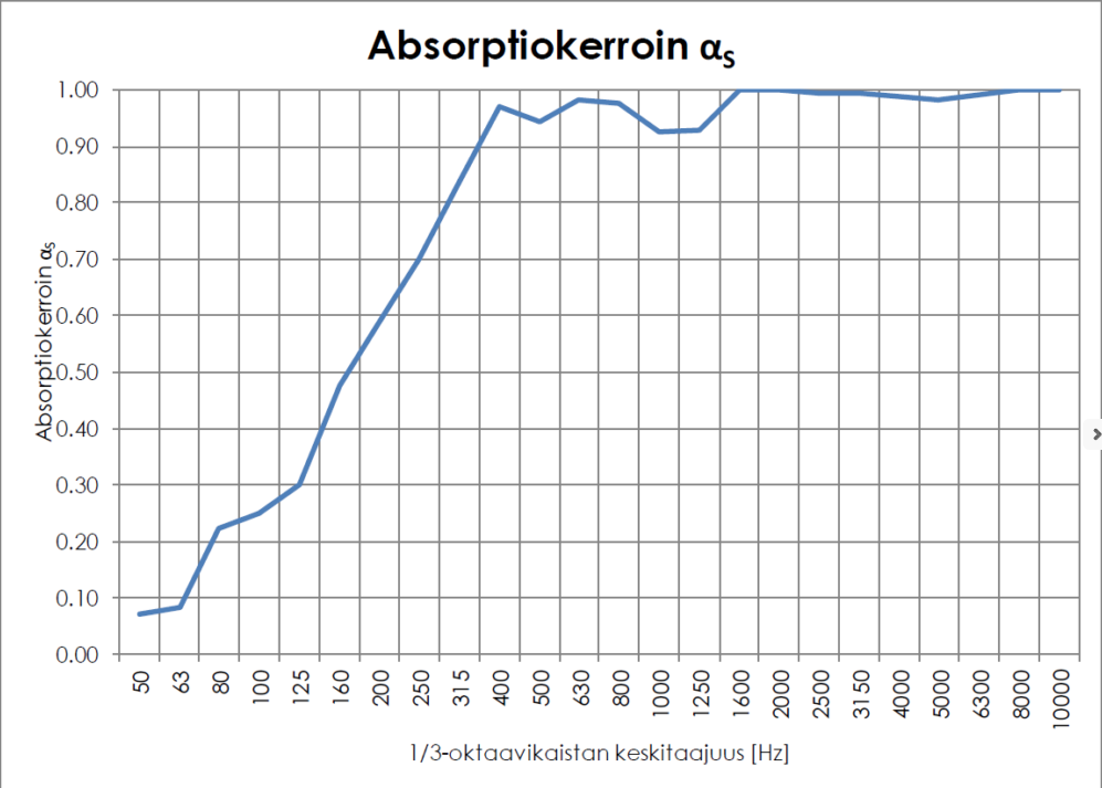 Äänenvaimennusluokka: A (SFS-EN ISO 354:2003 ja SFS-EN ISO 11654:1997)