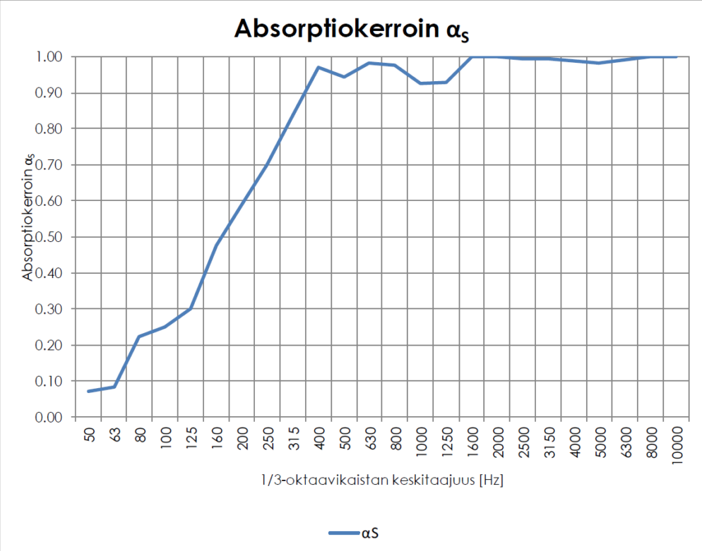 - Absorptioluokka A SFS-EN ISO 354:2003 ja SFS-EN ISO 11654:1997 mukaan