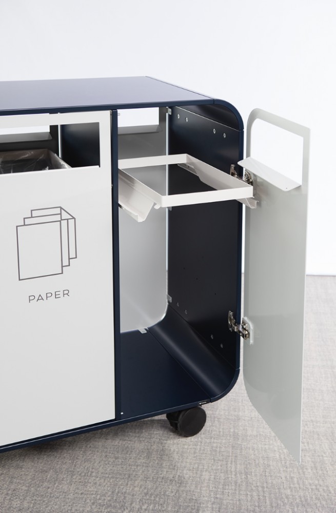 TRECE CLOUD on siirrettävä kierrätyskaluste, joka on suunniteltu sopimaan moderniin työympäristöön, jossa joustavuus ja estetiikka ovat avaintekijöitä. Yksinkertainen ja tyylikäs suunnittelu, pyöristetyt kulmat ja "rohkeat" pyörät.