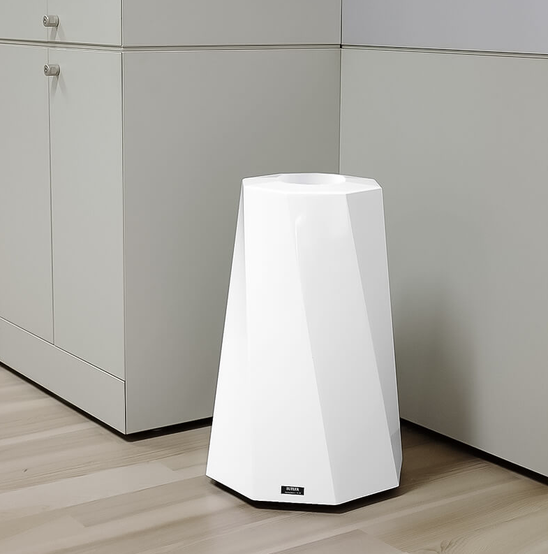 TRECE BUTLER on tyylikäs ja siisti kierrätysastia. BUTLER kierrätysastiaa on kahta eri kokoa. Small 46L ja Large 116L. Väri: valkoinen RAL 9010 (Saatavissa kaikilla RAL-väreillä, kysy lisää!)