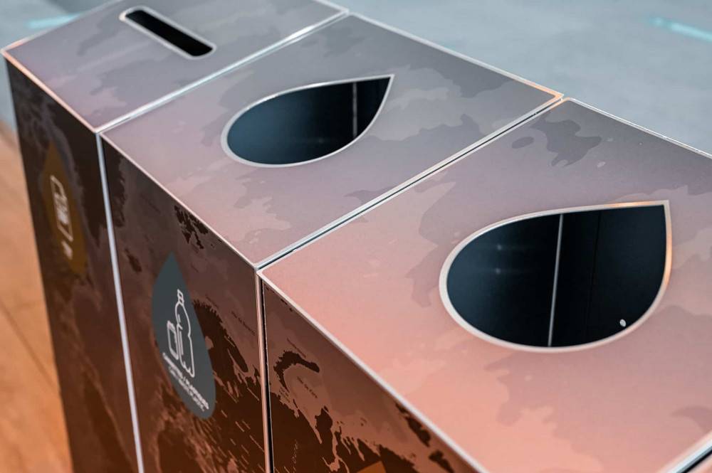 TRI UNO kierrätysasema on suunniteltu vastaamaan yritysten ja yhteisöjen valikoivaan lajittelutarpeeseen. Tämä erittäin kevyt kierrätysyksikkö toimitetaan litteänä, ja se voidaan asentaa välittömästi ilman kokoamista, sekä se voidaan puhdistaa silmänräpäyksessä vedellä.