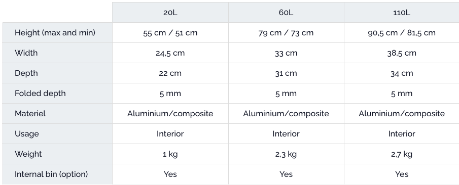 TRI UNO on valmistettu 80% kierrätetystä alumiinista. Valmistettu Ranskassa. Lisävarusteena saatavissa magneetit sivuihin, joilla kierrätysastioita voidaan kiinnittää toisiinsa.