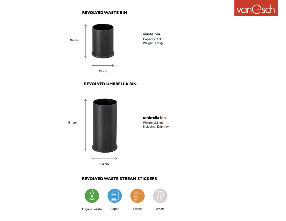 Functionalsin tyylikäs, minimalistinen roska-astiasarja REVOLVED mukautuu erilaisiin ympäristöihin ja tarpeisiin. REVOLVED toimii hyvin myös julkisissa tiloissa, sillä sarjan astiat ovat laadukkaita, kestävästä teräksestä valmistettuja.