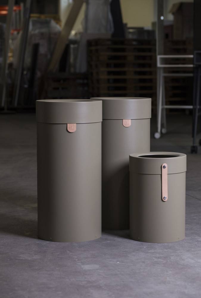 BIN THERE kierrätysastioita ja kärryä saa kahdessa koossa: S ja L. Lisäksi saatavilla L-kokoinen kukkaruukku. Materiaali on pulverimaalattu metalli, josta löytyy useita eri värivaihtoehtoja. Metalli on 25 % kierrätettyä ja pulverimaalattuna metalli on liuotinvapaata. Astioista ja kärryistä löytyy kauniita, käsintehtyjä yksityiskohtia, kuten elegantit viilukannet sekä nahkapidikkeet ja -kahvat. Nahka on Tärsnjön kasviparkittua nahkaa ja viilukannet ovat FSC-sertifioituja. Tuotteet on valmistettu Ruotsissa.