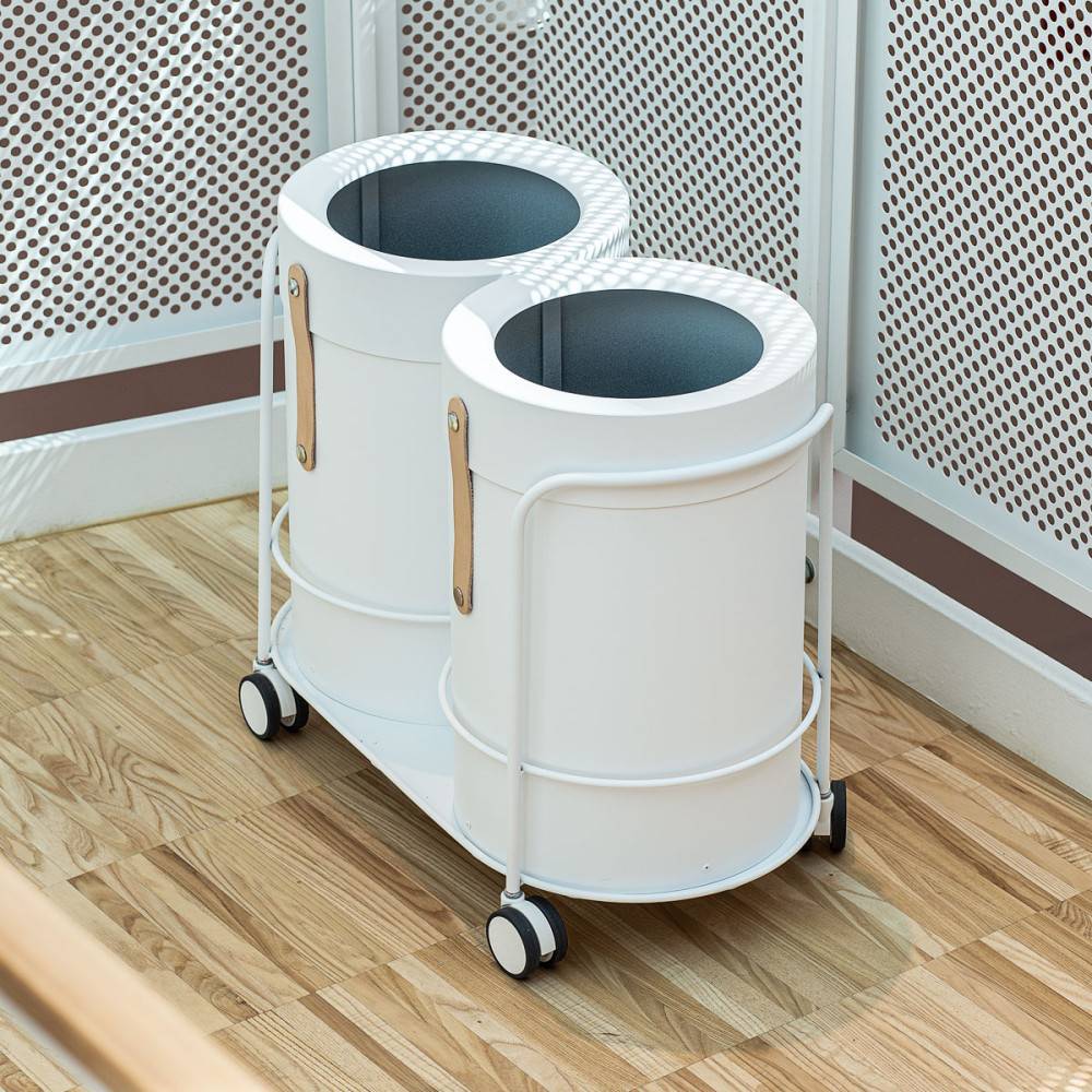 MIZETTON BIN THERE-mallisto koostuu käytännöllisistä, eleganteista ja helposti liikuteltavista kierrätysasioista. Kierrätysasema koostuu kahdesta lieriön mallisesta astiasta, joita voi halutessaan käyttää metallisessa kärryssä. Kahvojen ja pyörien ansiosta kärry on myös liikuteltavissa ja metallikehikko pitää astiat paikoillaan. Kierrätysastiat ovat kauniita sellaisenaankin, ja niitä voi käyttää myös kukkaruukkuina.