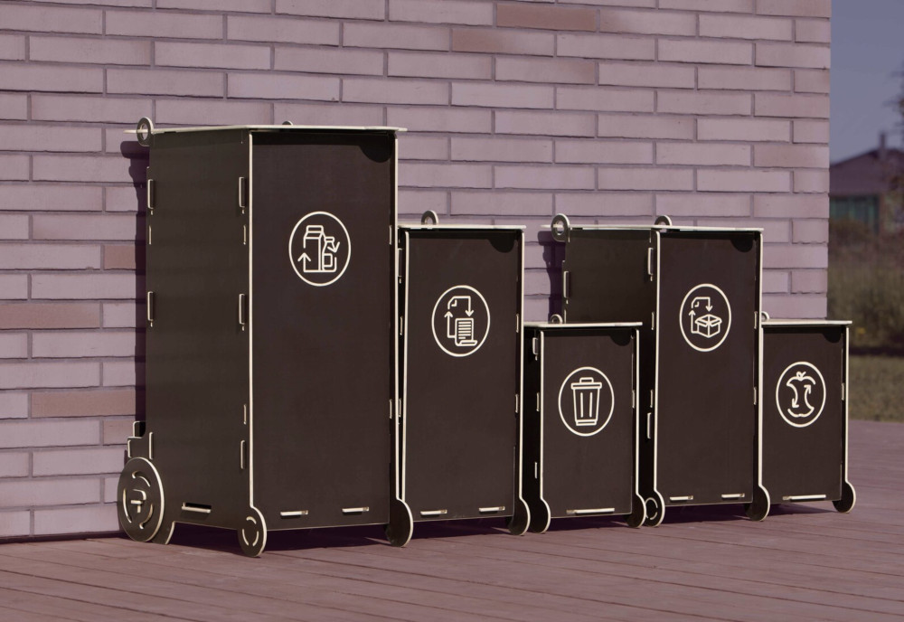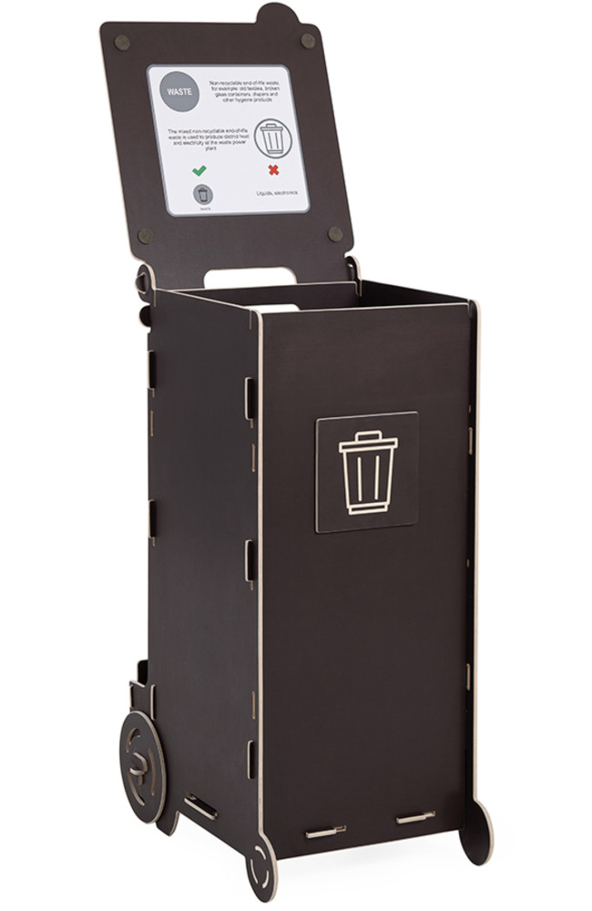 SORTAIDERIN SORTAIDER kierrätysastia on baltialaisesta, vedenkestävästä vanerista valmistettu jätteiden lajittelupiste. SORTAIDER on tyylikäs ja käytännöllinen tapa hoitaa toimistojen, hotellien tai muiden julkisten tilojen jätteidenlajittelu.