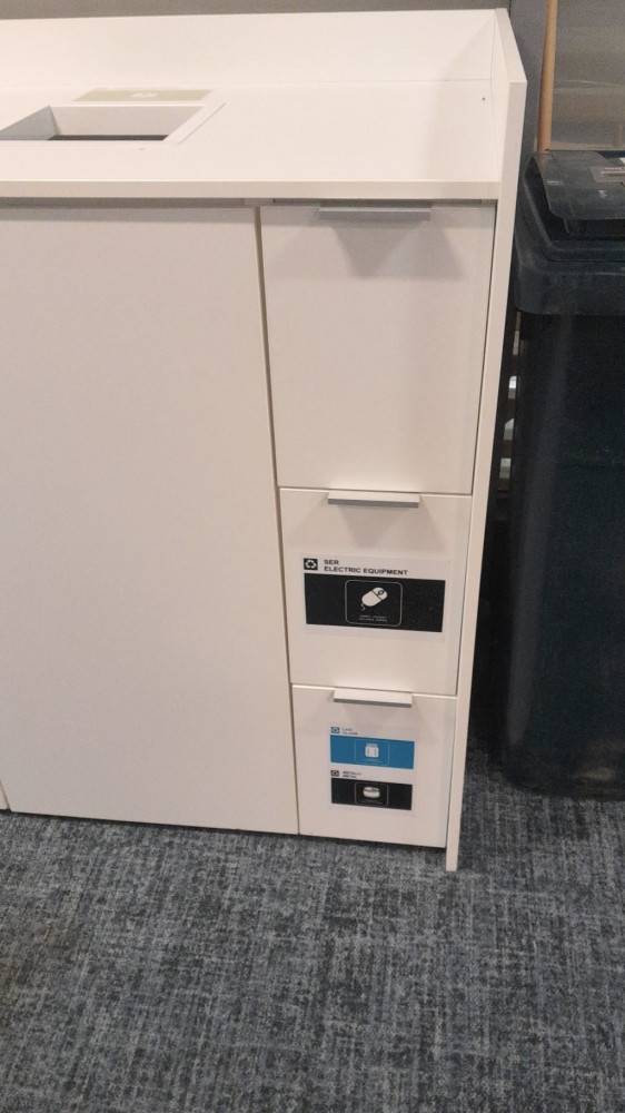 Moderni ja siistikuntoinen kierrätysasema, joka sopii erinomaisesti toimistoihin, taukotiloihin, auloihin ja yhteiskäyttötiloihin. Tämä laadukas kokonaisuus tekee jätteiden lajittelusta helppoa ja selkeää – jokaiselle jakeelle on oma merkitty lokeronsa.