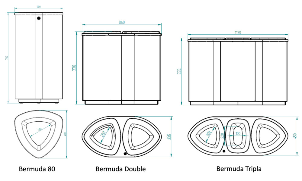 Bermuda-sarja on tarkoitettu tehokkaaseen jätteiden lajitteluun osana kiinteistön jätehuoltoa ja tilasuunnittelua. Eri mallit mahdollistavat ratkaisun sekä yksittäisiin pisteisiin että laajempiin lajittelukokonaisuuksiin. Sarja soveltuu hyvin projekteihin, joissa vaaditaan yhtenäistä ilmettä ja skaalautuvaa järjestelmää useisiin tiloihin.