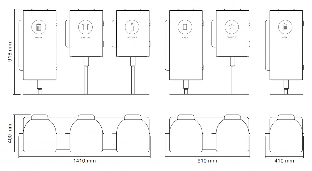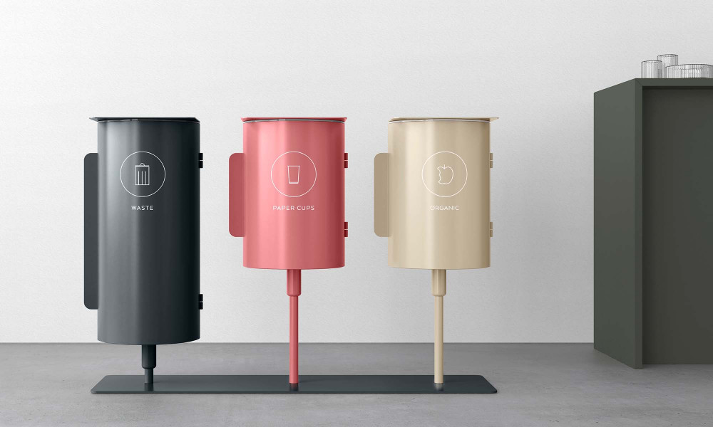 Jalustat 1, 2 ja 3 kierrätysastialle. Kysy tarjous 2 ja 3 jäteastialle. Samaan jalustaan voi yhdistää eri kokoisia ja värisiä kierrätysastioita.
