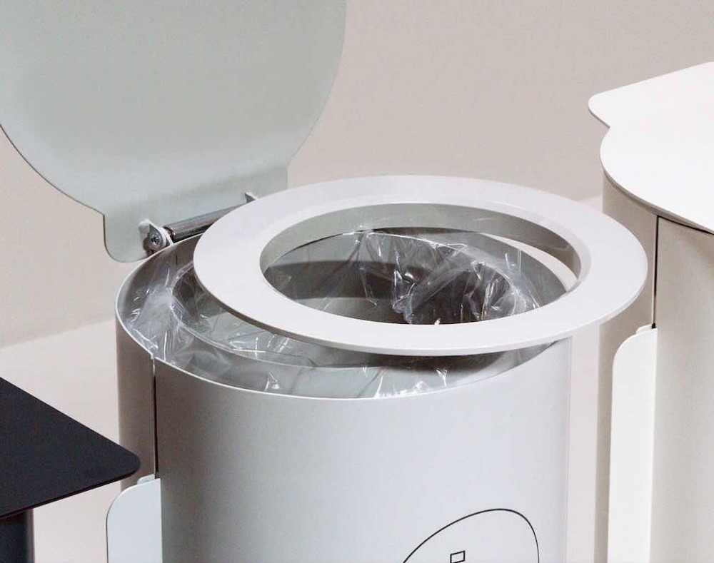 Kansi on pehmeästi sulkeutuva. Sisärengas on irrotettava puhdistusta varten.
