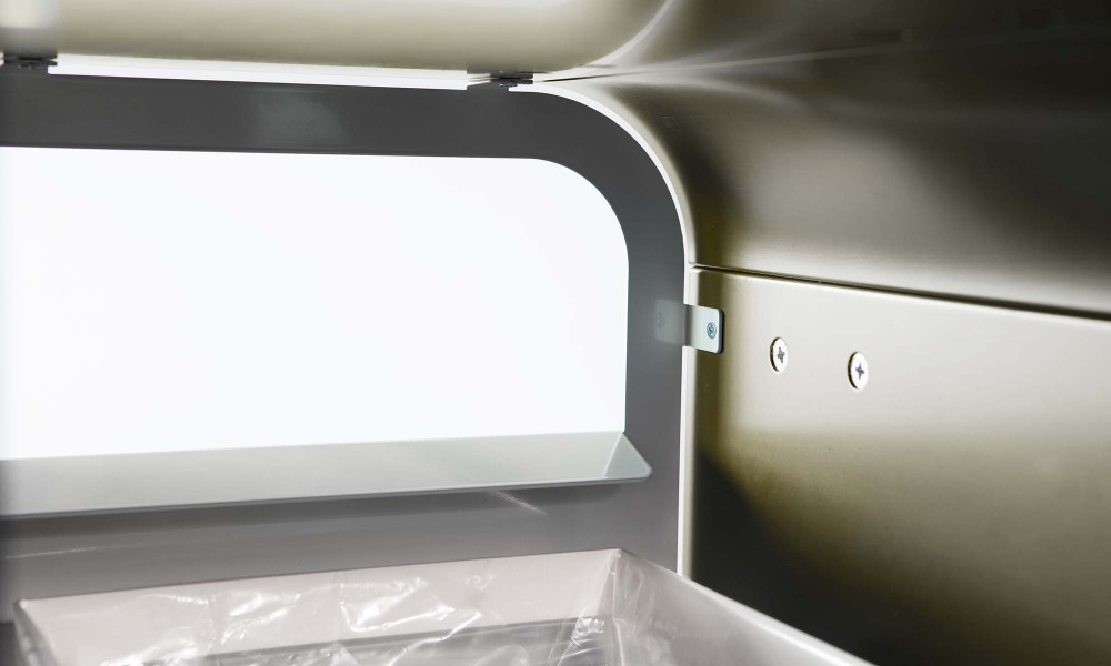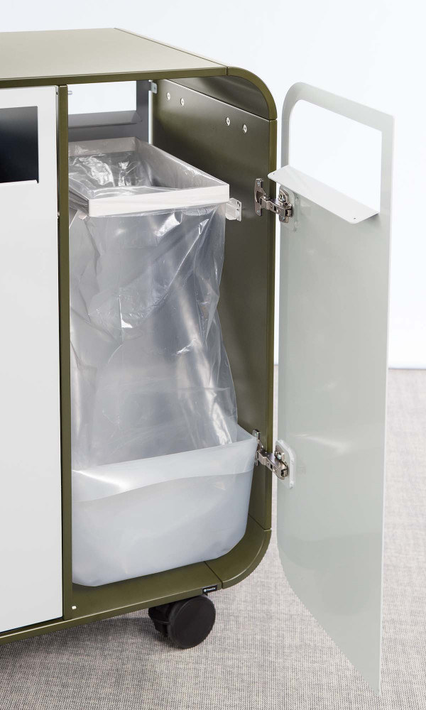 Suunniteltu 85-125 litran jätesäkeille. Lisävarusteena saatavana 85 litran jätesäkkejä (25 ps/pkt), kosteussuoja alaosaan sekä kumimatto.