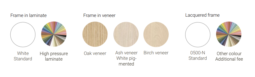 Vakioväri valkoinen NCS S 0500 N, saatavana myös kaikissa NCS väreissä. Saa myös laminaatilla tai viilulla, kysy näistä lisää.