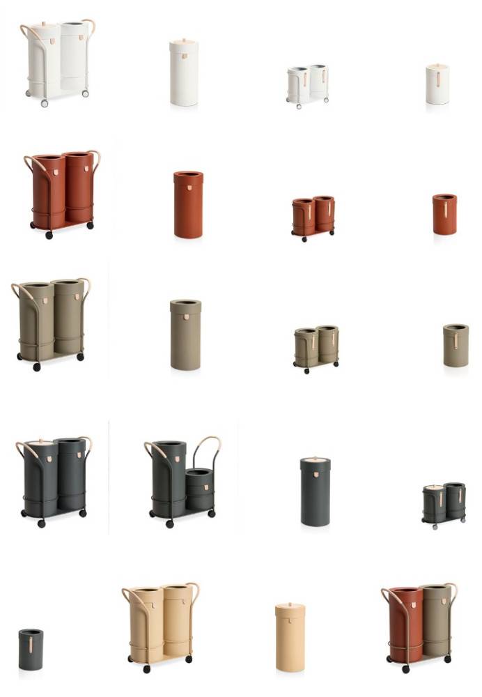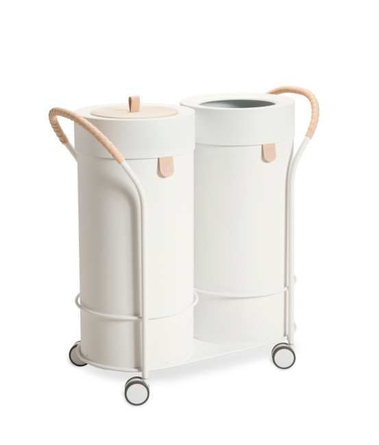 MIZETTON BIN THERE-mallisto koostuu käytännöllisistä, eleganteista ja helposti liikuteltavista kierrätysasioista. Kierrätysasema koostuu kahdesta lieriön mallisesta astiasta, joita voi halutessaan käyttää metallisessa kärryssä. Kahvojen ja pyörien ansiosta kärry on myös liikuteltavissa ja metallikehikko pitää astiat paikoillaan. Kierrätysastiat ovat kauniita sellaisenaankin, ja niitä voi käyttää myös kukkaruukkuina.