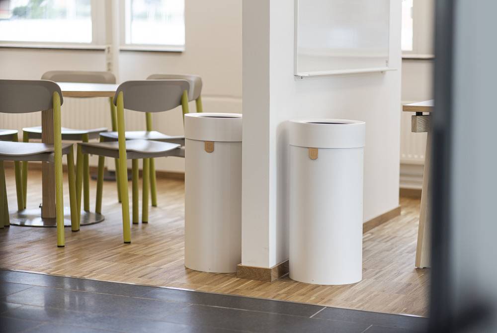 BIN THERE kierrätysastioita ja kärryä saa kahdessa koossa: S ja L. Lisäksi saatavilla L-kokoinen kukkaruukku. Materiaali on pulverimaalattu metalli, josta löytyy useita eri värivaihtoehtoja. Metalli on 25 % kierrätettyä ja pulverimaalattuna metalli on liuotinvapaata. Astioista ja kärryistä löytyy kauniita, käsintehtyjä yksityiskohtia, kuten elegantit viilukannet sekä nahkapidikkeet ja -kahvat. Nahka on Tärsnjön kasviparkittua nahkaa ja viilukannet ovat FSC-sertifioituja. Tuotteet on valmistettu Ruotsissa.