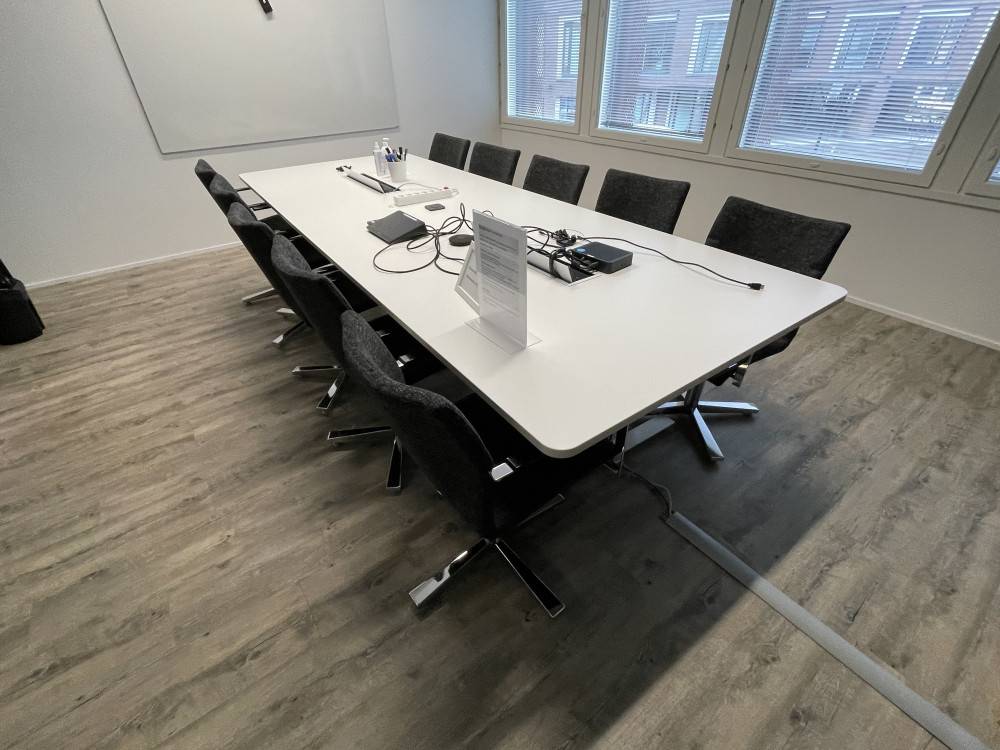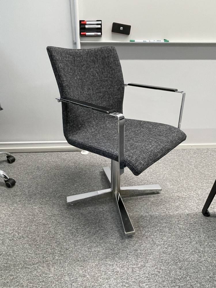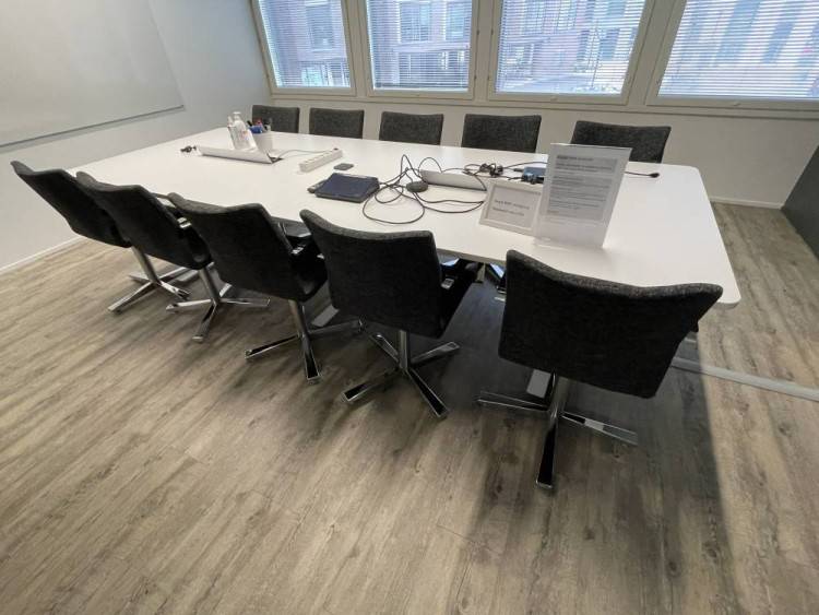 Mukana kymmenen LEPO PRODUCT APOLLO -neuvottelutuolia, joissa on pyörivä jalusta ja palautusmekanismi. Tuolit tarjoavat ergonomista istumismukavuutta ja palautuvat aina käytön jälkeen siistiin asentoon, mikä viimeistelee tilan ilmeen.