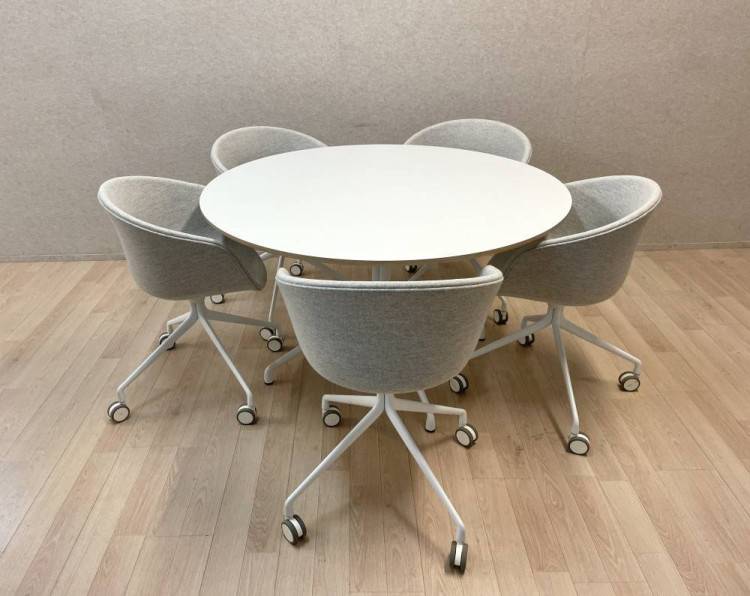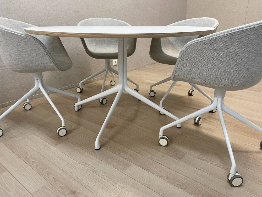 Tyylikäs ja laadukas HAY-neuvotteluryhmä. Kokonaisuuteen kuuluu 5 kpl About A Chair AAC 25 -tuoleja sekä pyöreä About a Table AAT20 -pöytä.