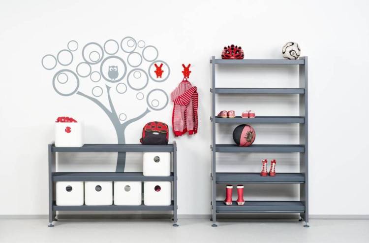Kokonaisuus rakennetaan perus- ja jatko-osista, jolloin telineen leveys, korkeus ja kapasiteetti voidaan sovittaa tilan ja käyttäjämäärän mukaan. Saatavilla on useita korkeuksia aina kaksitasoisesta seitsemäntasoiseen malliin. Lisävarusteilla kokonaisuutta voidaan täydentää esimerkiksi kurapelleillä ja säilytyslaatikoilla.
