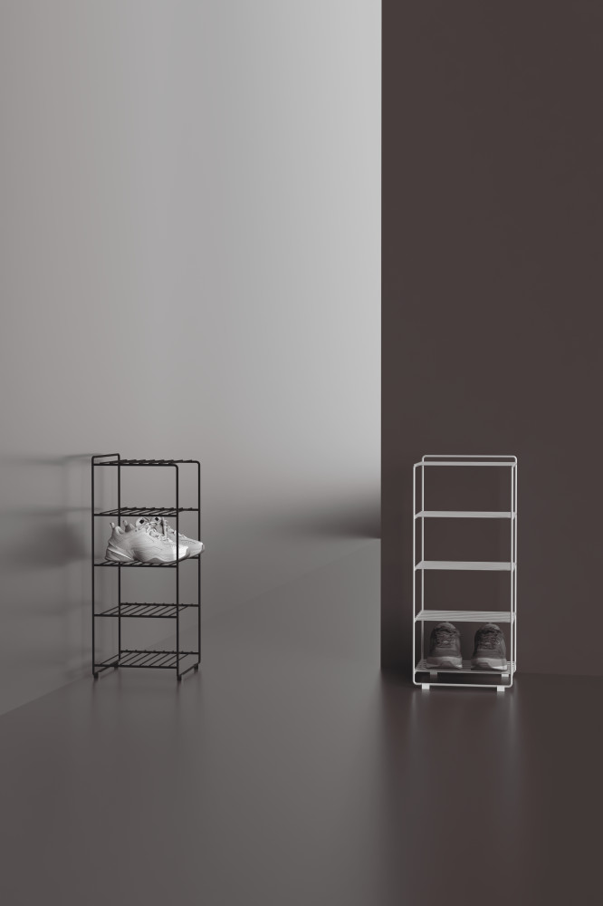 Shoescraper on pelkistetty ja tehokkaasti tilaa säästävä kenkähylly, joka nostaa säilytysratkaisut uudelle tasolle. Viisiportainen rakenne tarjoaa runsaasti säilytystilaa pystysuunnassa, joten se sopii täydellisesti pieniin eteisiin ja kapeisiin käytäviin.