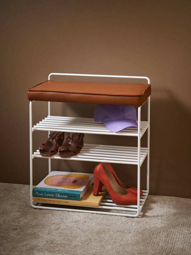 Lower East Seat on tyylikäs ja monikäyttöinen ratkaisu, joka yhdistää istuimen ja säilytyksen yhteen kompaktiin kokonaisuuteen. Ruotsissa valmistettu penkki tarjoaa neljä hyllytasoa, joihin mahtuvat niin arjen kengät kuin korkeavartiset saappaatkin. Ylin taso toimii mukavana istuimena, joka on verhoiltu laadukkaalla Elmosoft-nahalla.