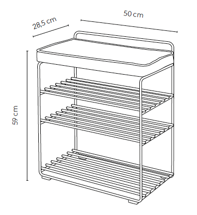Mitat: leveys 500 mm, syvyys 285 mm, korkeus 590 mm