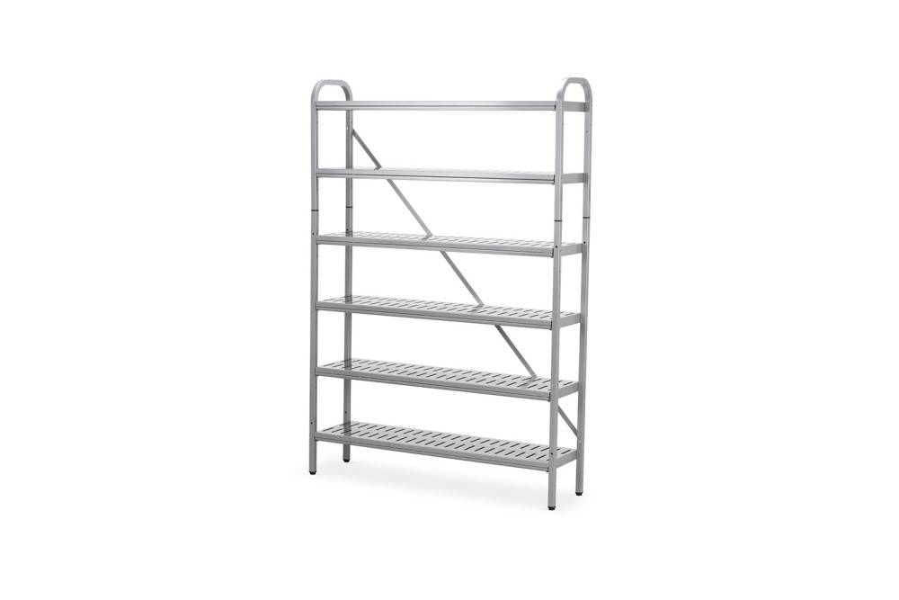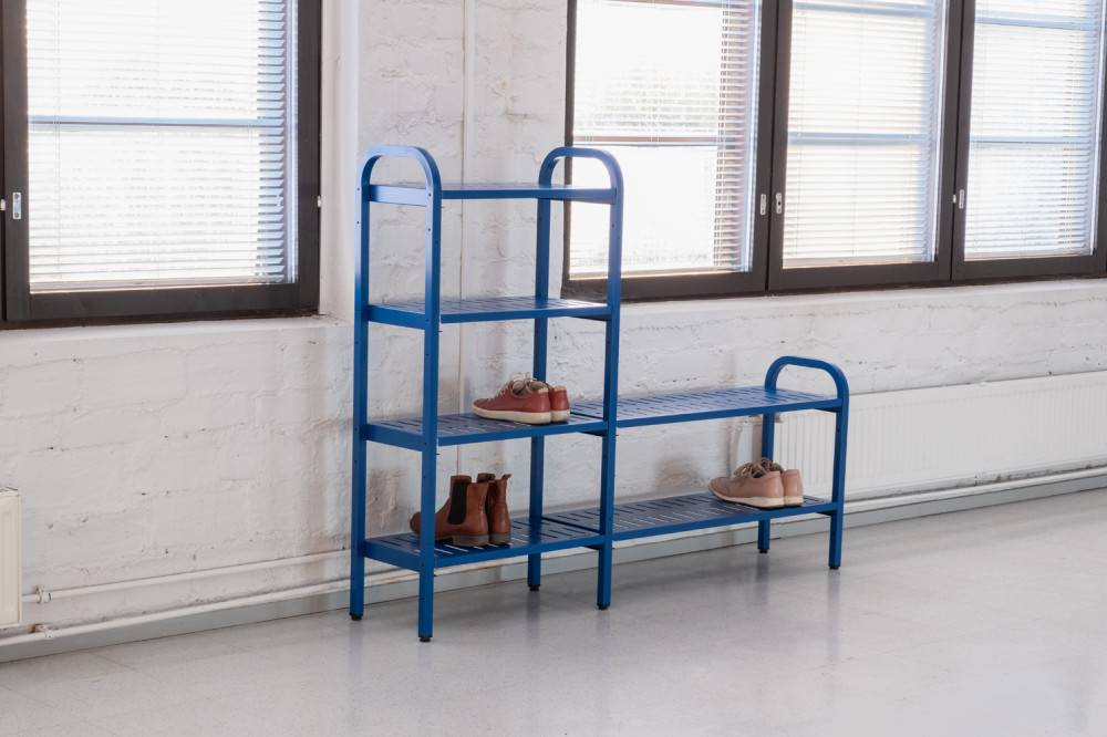 Rakenne perustuu metalliputkirunkoon ja perforoituihin metallihyllyihin. Jokaisessa hyllyssä on integroitu kurapelti, joka kerää kenkien mukana tulevan lian ja kosteuden ja estää sen valumisen alemmille tasoille tai lattialle. Hyllyjen korkeutta voidaan säätää, ja lisätuet mahdollistavat käytön myös raskaammissa kohteissa.