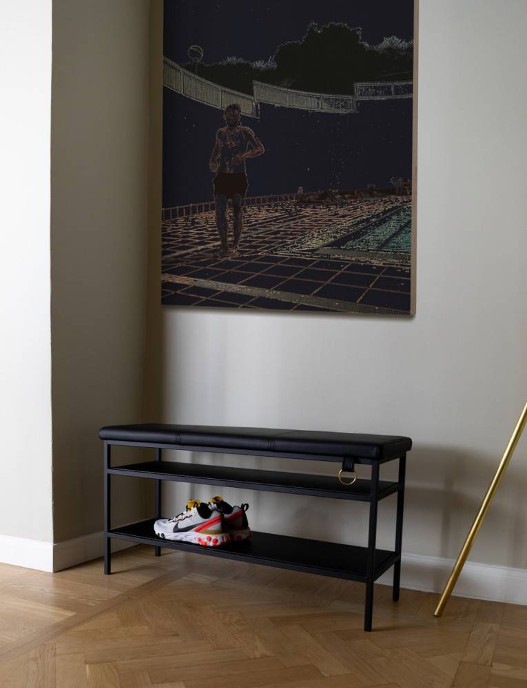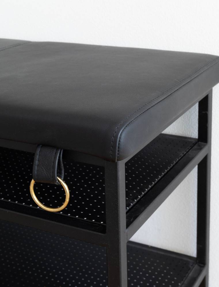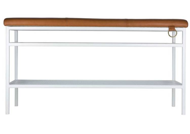 Nancy tarjoaa kaksi hyllytasoa kenkien ja asusteiden säilytykseen. Valkoinen, musta tai lämpimän kanelinsävyinen runko yhdistettynä aitoon nahkaistuimeen tuo tilaan ripauksen ylellisyyttä ja mukavuutta.
