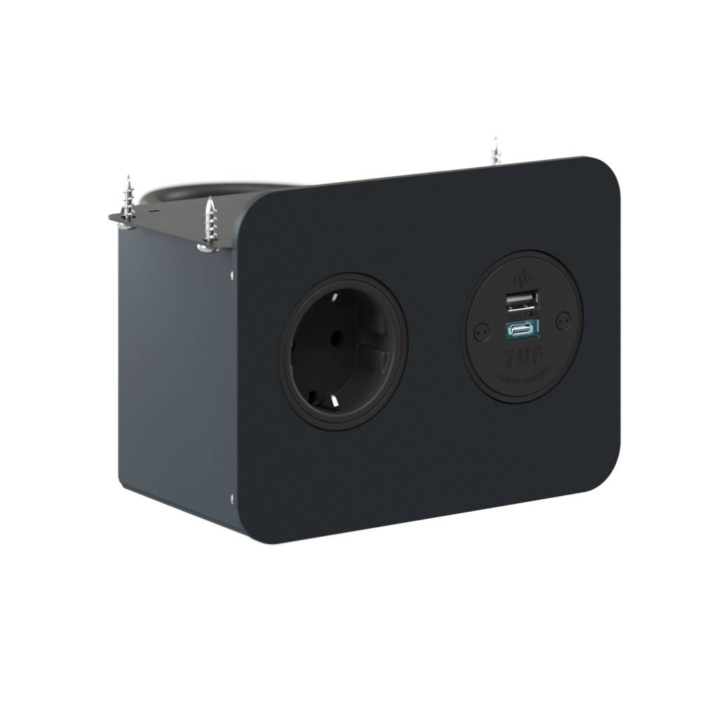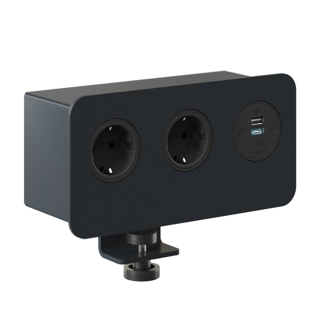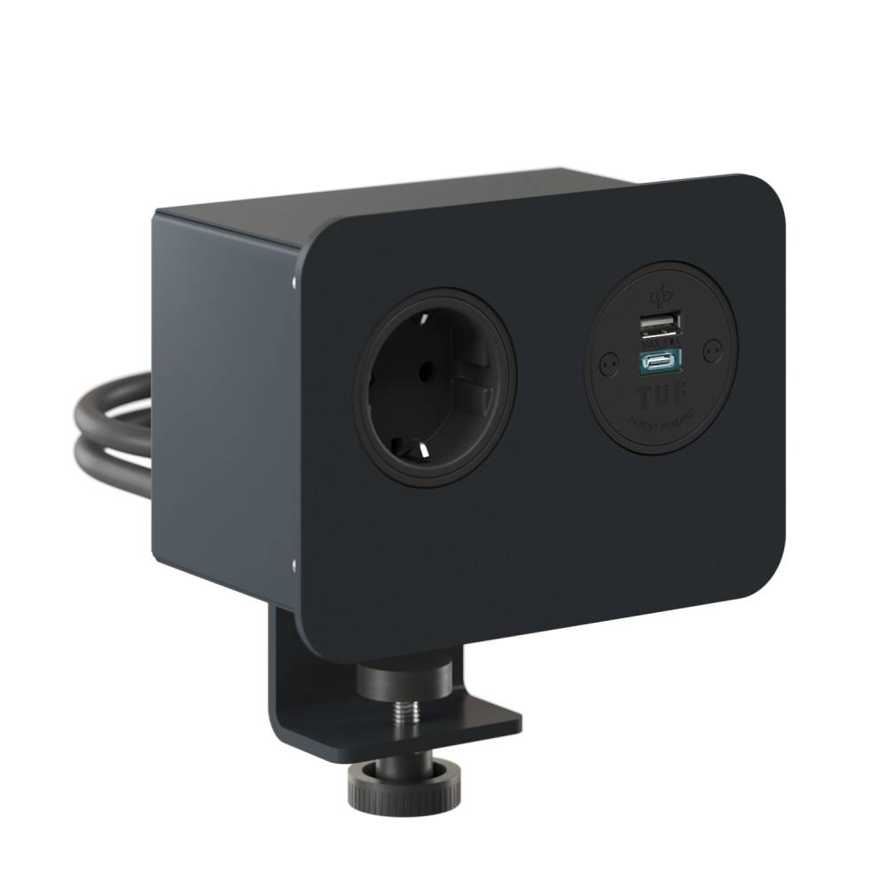 ZEDO-pistorasiaan on saatavissa integroitu USB Fast Charger (Type A + C), joka mahdollistaa laitteiden nopean latauksen suoraan työpisteellä.
