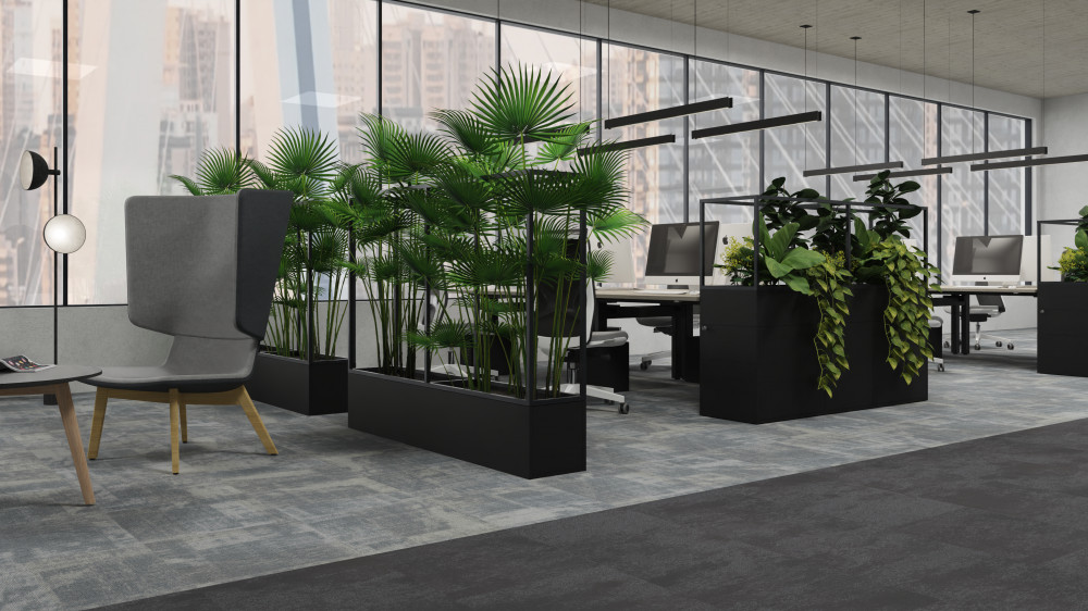 PLAN BOX toimii tilanjakajana tai vain tuomaan viihtyisyyttä toimistoihin, auloihin, kahviloihin, ravintoloihin ym. julkisiin tiloihin. Modernin ruukku ja metalliosat saatavana useassa eri värissä (kts. kuva).