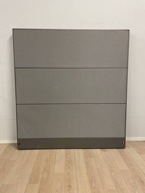 Korkeus 130 cm, tummanharmaalla verhoilulla.
