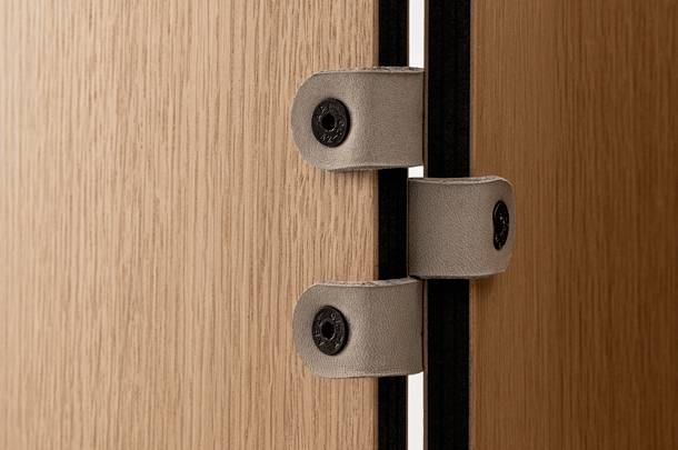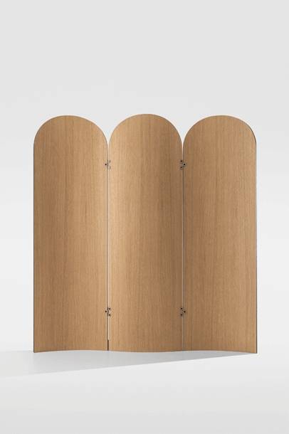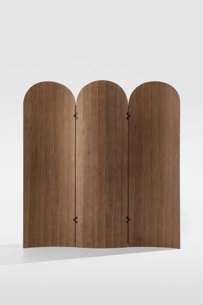 Saatavana tammi- ja pähkinäviilulla. Paneelit voidaan taittaa kokoon, mikä helpottaa säilytystä ja siirtämistä.