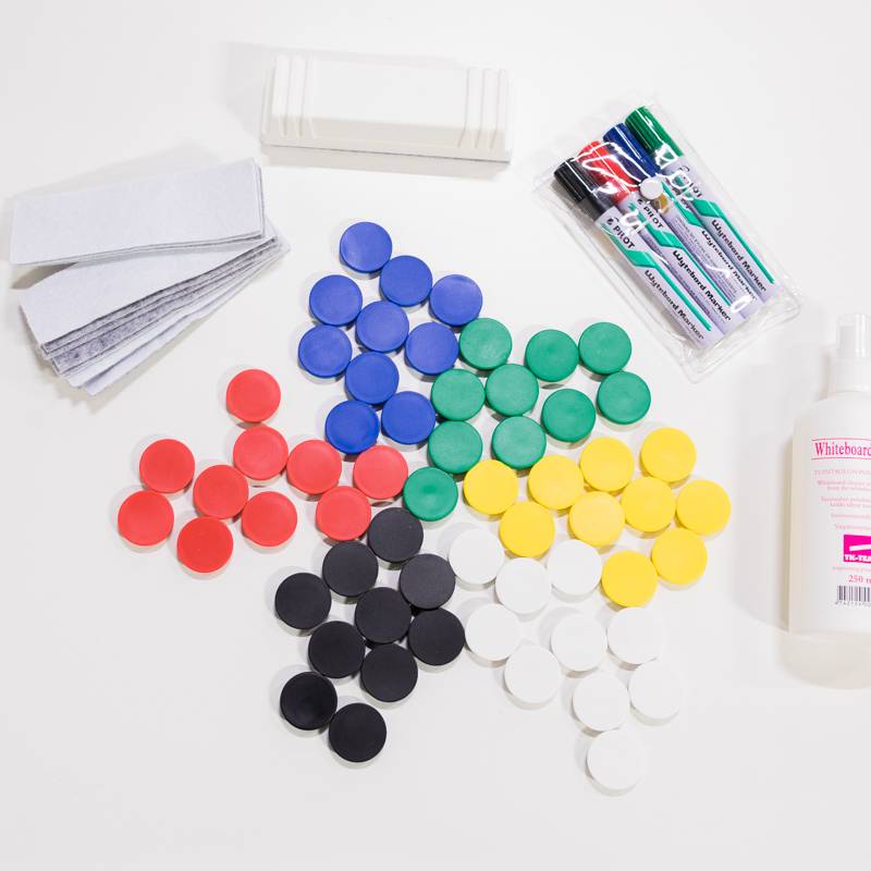 Aloituspaketti 1 on kätevä kokonaisuus, joka sisältää kaikki perustarvikkeet kirjoitustaulujen päivittäiseen käyttöön ja ylläpitoon. Laadukkaat tuotteet varmistavat siistin ja vaivattoman käytön niin toimistossa kuin neuvottelutiloissa.