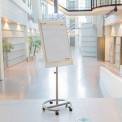 Taulussa on säädettävä vaaleanharmaa teleskooppijalusta sekä säädettävä lehtiöpidike, mikä mahdollistaa erikokoisten fläppipapereiden käytön. Erinomainen valinta kokous- ja koulutustiloihin.