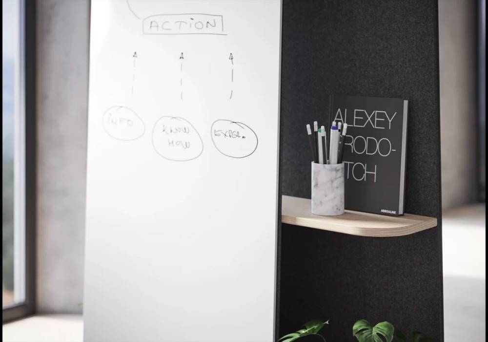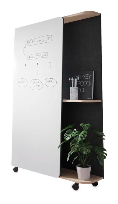 Glimakra Gemini Mobile Write Board on monikäyttöinen ja liikuteltava ratkaisu toimistoihin ja julkitiloihin, joissa tilaa halutaan jakaa, jäsentää ja hyödyntää joustavasti. Tuote yhdistää magneettisen kirjoitustaulun, akustoivan pinnan ja käytännöllisen säilytystason samaan kokonaisuuteen. Gemini soveltuu erinomaisesti neuvottelutiloihin, avoimiin toimistoihin, oppimisympäristöihin ja projektityöskentelyyn.