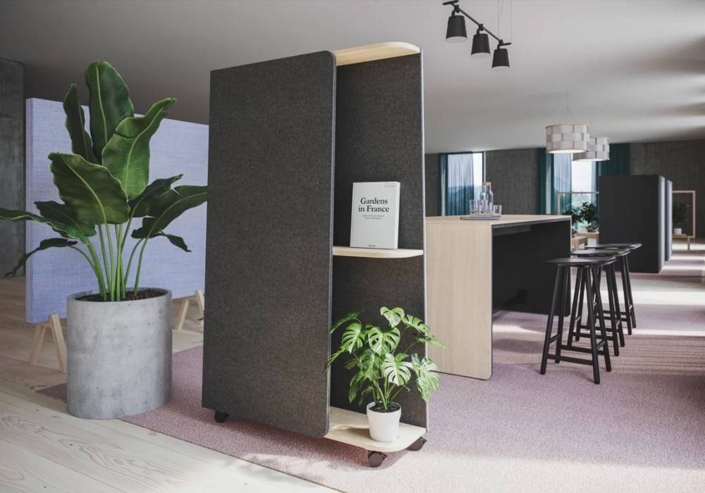 Gemini toimii yhtä aikaa tilanjakajana, kirjoitusalustana ja siirrettävänä säilytyskalusteena. Etu- ja takapinta voidaan toteuttaa joko magneettisena kirjoitustauluna, ääntä vaimentavana verhoiltuna pintana tai näiden yhdistelmänä. Sisäpinta on aina verhoiltu, mikä parantaa tilan akustiikkaa ja käyttömukavuutta.