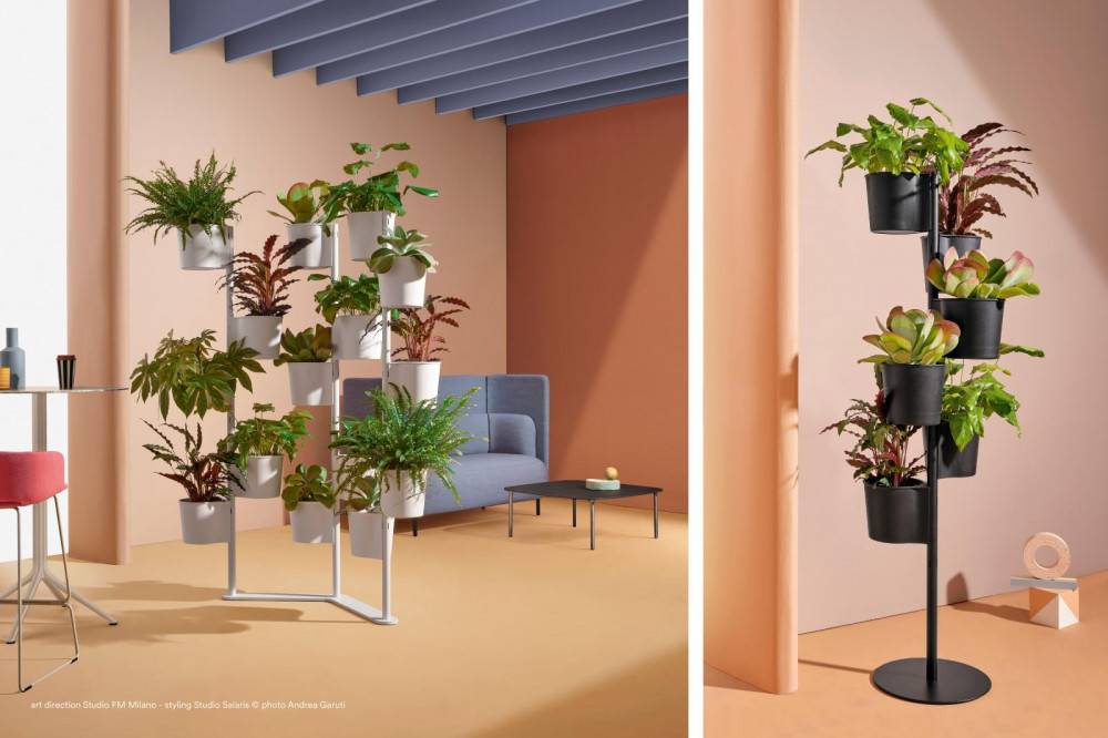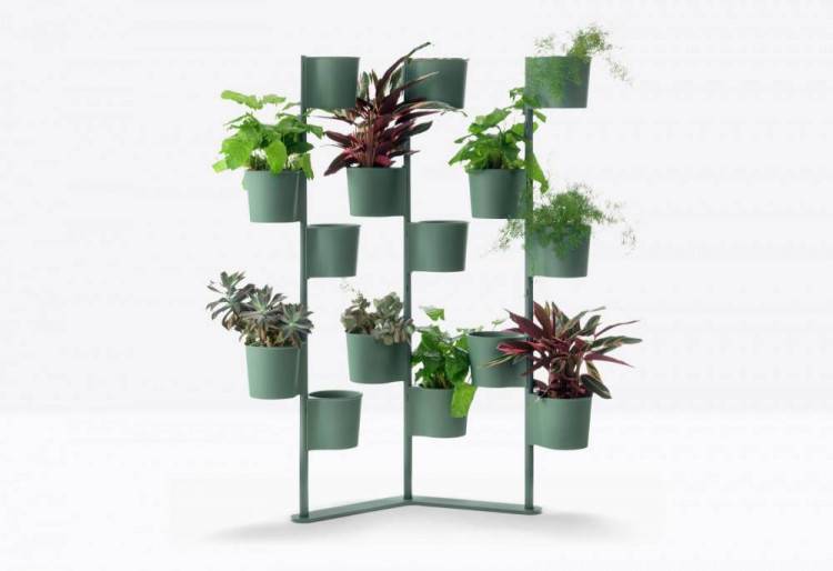 PEDRALI HEVEA kasviteline on monipuolinen sisustuselementti. HEVEA kasviteline koostuu muotoillusta alustasta ja kolmesta teräspylväästä, joihin on kiinnitetty yksi, kuusi tai viisitoista polypropeeniruukkua.Ruukut on helppo kiinnittää joko vastakkain tai spiraaliin.