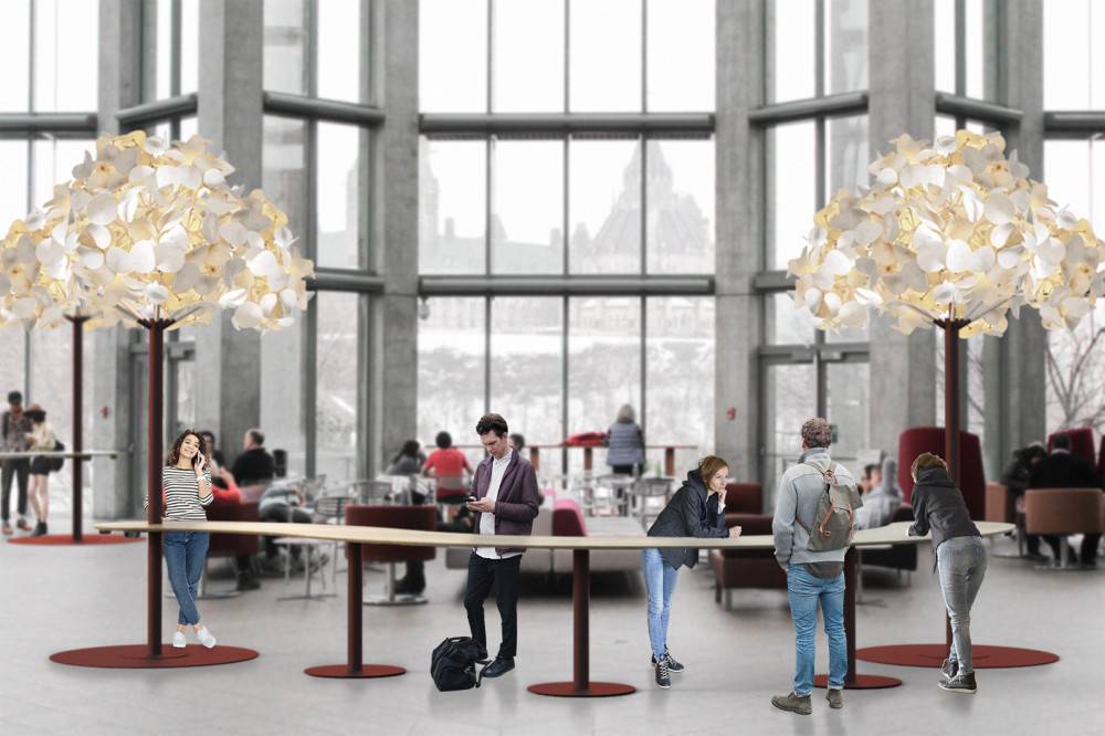Valaisimen runkoon on saatavilla pöytätaso, joka kiertää valaisimen ympäri ja tarjoaa tilaa usealle henkilölle. Mittatilauksena voidaan toteuttaa erilaisia pöytäratkaisuja, esimerkiksi kahden valaisimen väliin sijoitettava pöytä. Tasot viimeistellään kovavahaöljyllä, ja pöytälevyyn voidaan integroida pistorasia sekä USB-liitännät.