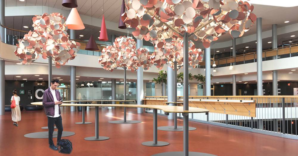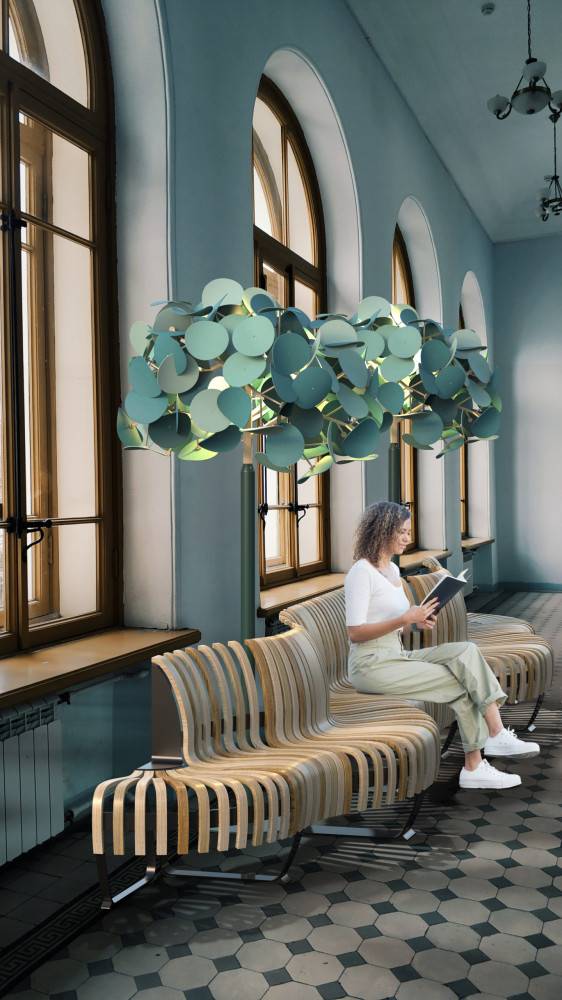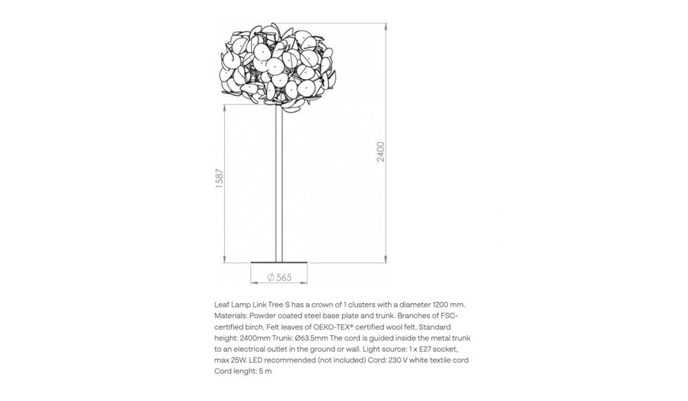 Luonnosta inspiraationsa saanut Leaf Lamp Tree tuo aitoja materiaaleja ja orgaanista muotoilua sisätiloihin. Rungon ja oksiston voi valita aidosta koivusta tai jauhemaalatusta teräsputkesta haluamallasi RAL-värillä. Oksistossa oleva linnunpönttö kätkee sähkökytkennät siististi näkymättömiin. Villahuovasta valmistettu lehdistö hajauttaa valon ja vaimentaa taustamelua luokan A akustisilla ominaisuuksillaan.