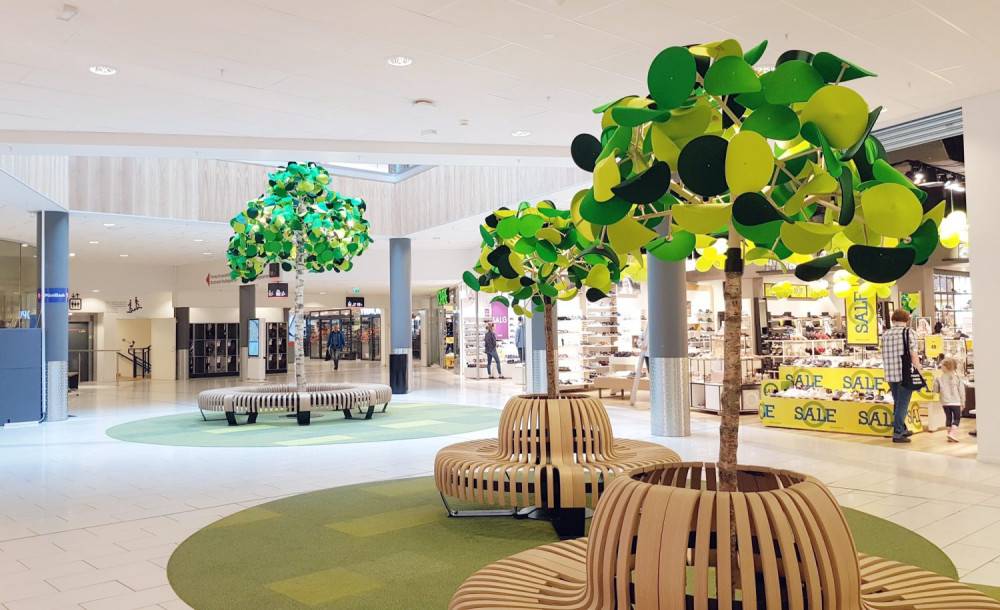 Leaf Lamp Tree on suunniteltu kiinnitettäväksi erilliselle pohjalevylle tai suoraan lattiaan. Se toimii tilassa näyttävänä katseenvangitsijana myös ilman valoa – täydellinen ratkaisu paikan hengen luomiseen ostoskeskuksissa, aulatiloissa ja muissa julkisissa ympäristöissä.