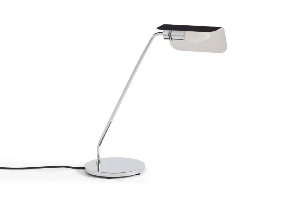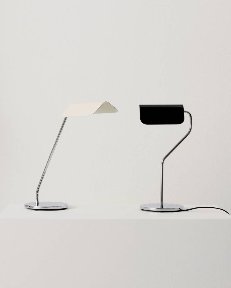 Apex Desk Lamp on osa John Treen suunnittelemaa, edistyksellistä Apex-valaisinsarjaa, jossa klassinen pankkiirivalaisin kohtaa modernin muotoilun ja raikkaan värimaailman. Sarjan tunnistettava harjakattoa muistuttava, taitettu teräsvarjostin luo veistoksellisen siluetin ja toimii näyttävänä kontrastina kromatuille yksityiskohdille.