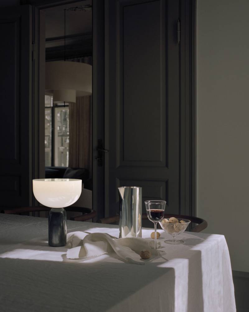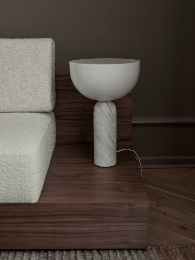 Kizu-pöytävalaisin on muodostunut New Worksin ikoniksi, jossa muoto, materiaali ja valo yhdistyvät harmoniseksi kokonaisuudeksi. Valaisimen ilme perustuu kahden vastakkaisen muodon kohtaamiseen: pyöristetty akryylikupu lepää kuin tasapainossa massiivisen marmorijalustan päällä. Tämä “suudelman” muotoinen liitoskohta antaa Kizulle sen tunnistettavan veistoksellisen luonteen.