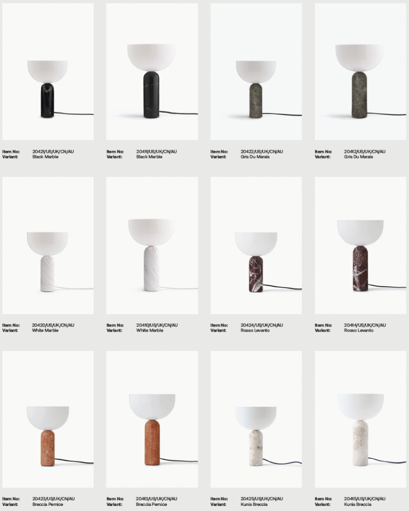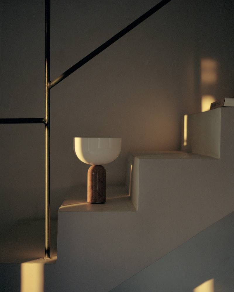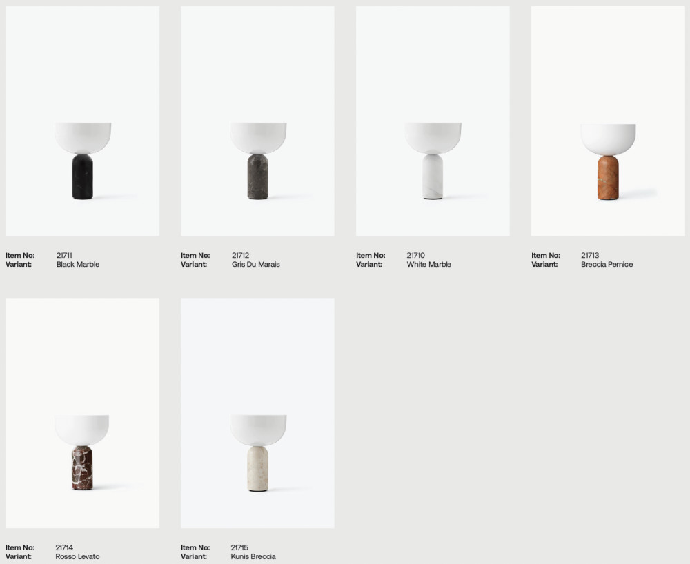 Kizu-valaisin on saatavana kahdessa koossa ja useissa marmorivaihtoehdoissa. Mallistoon kuuluu myös ladattava, johdoton versio, joka tuo Kizun valon vapaasti minne tahansa.
