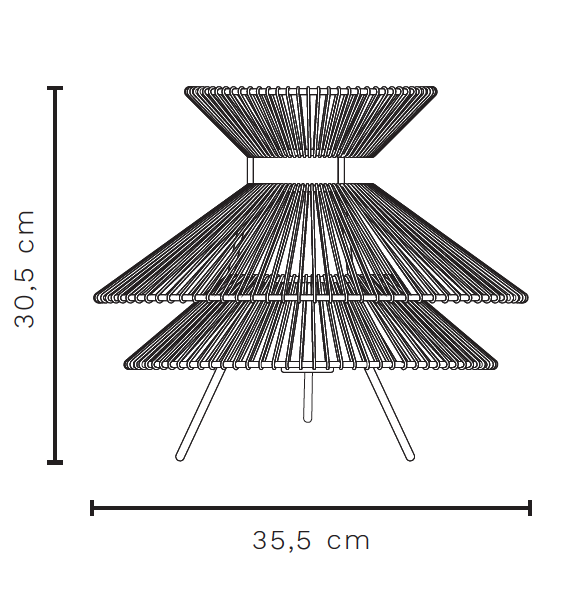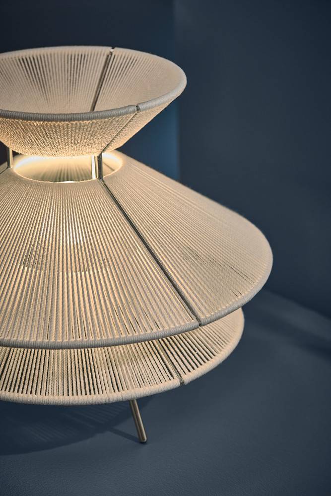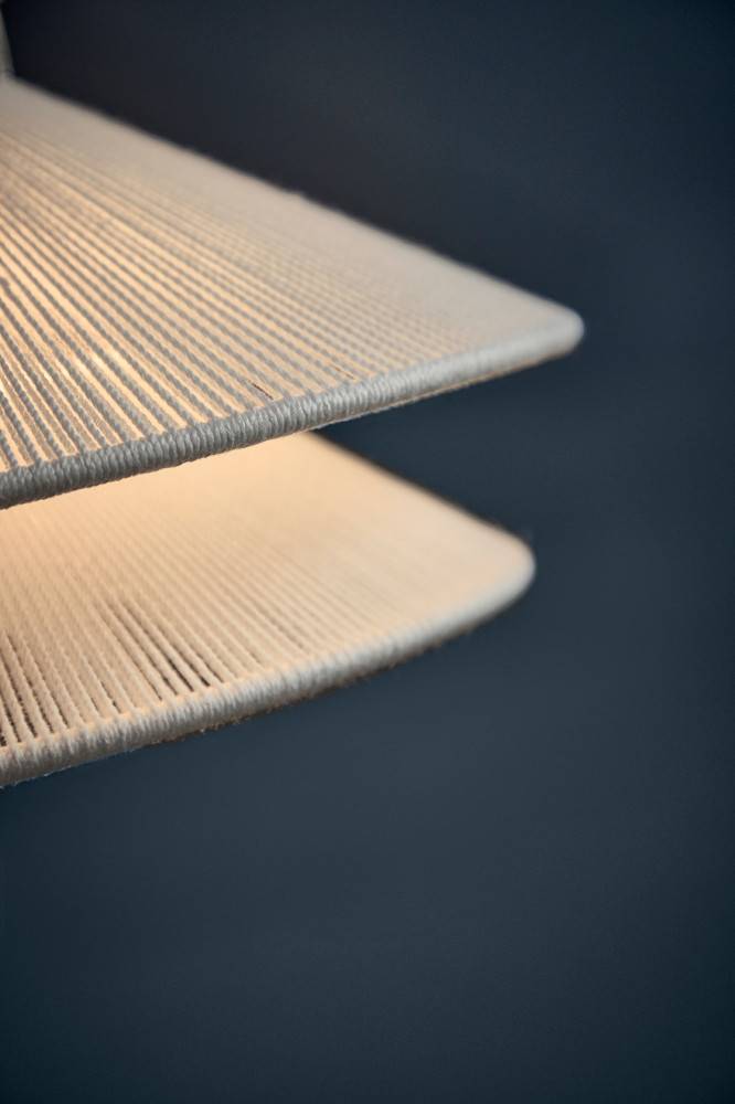 Valaisin on valmistettu ruostumattomasta teräksestä ja pellavanaruista. Pöytävalaisinmallissa on 250 cm pitkä valkoinen kangaspäällysteinen johto, jossa on himmenninkytkin. Valonlähde ei sisälly toimitukseen.