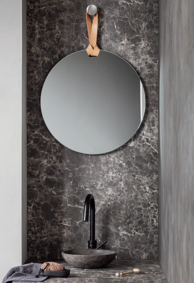 EVA SOLO ROPE peili on tyylikäs pyöreä peili, jota on saatavilla kahdessa eri koossa. ROPE peili kiinnitetään nahka hihnalla alumiinikoukkuun.