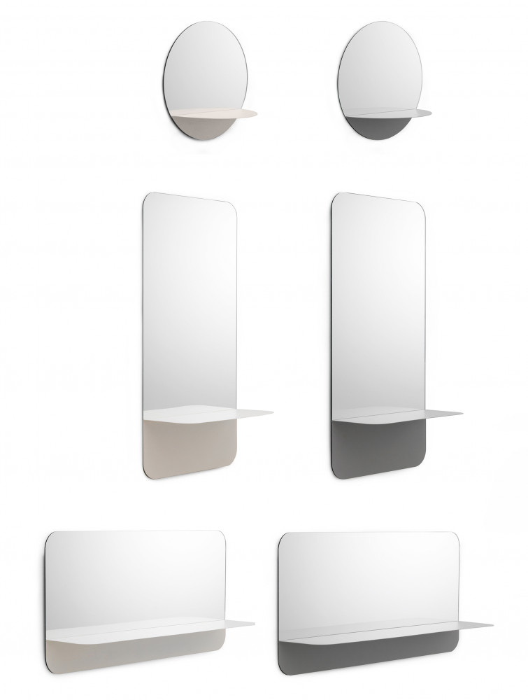 NORMANN COPENHAGEN HORIZON on kokoelma eri geometrisia muotoja sisältäviä seinäpeilejä, joihin on integroitu teräshylly. Hylly toimii kätevänä laskutasona ja taustalla oleva peili monistaa esineet, jolloin syntyy kaunis visuaalinen efekti. HORIZON peiliä on saatavissa pyöreänä, vaakasuorana tai pystysuorana.