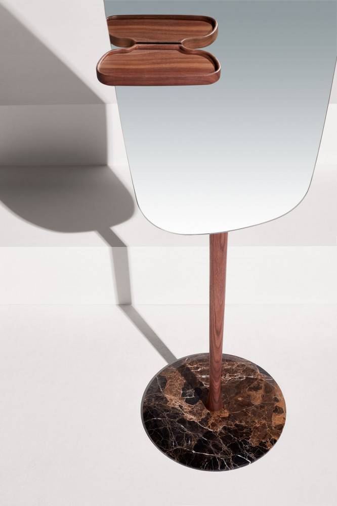 NOMON ESPEJO DE PARED on tyylikäs peili. Peilissä on tyylikäs marmori jalka. Marmorin värivaihtoehtoja on kolme. Peilin käsintehty hylly on pähkinä massiivipuuta tai mustaksi petsattua saarnia. Hylly toimii kätevänä laskutasona ja taustalla oleva peili monistaa esineet, jolloin syntyy kaunis visuaalinen efekti. Pyydä tarjous!