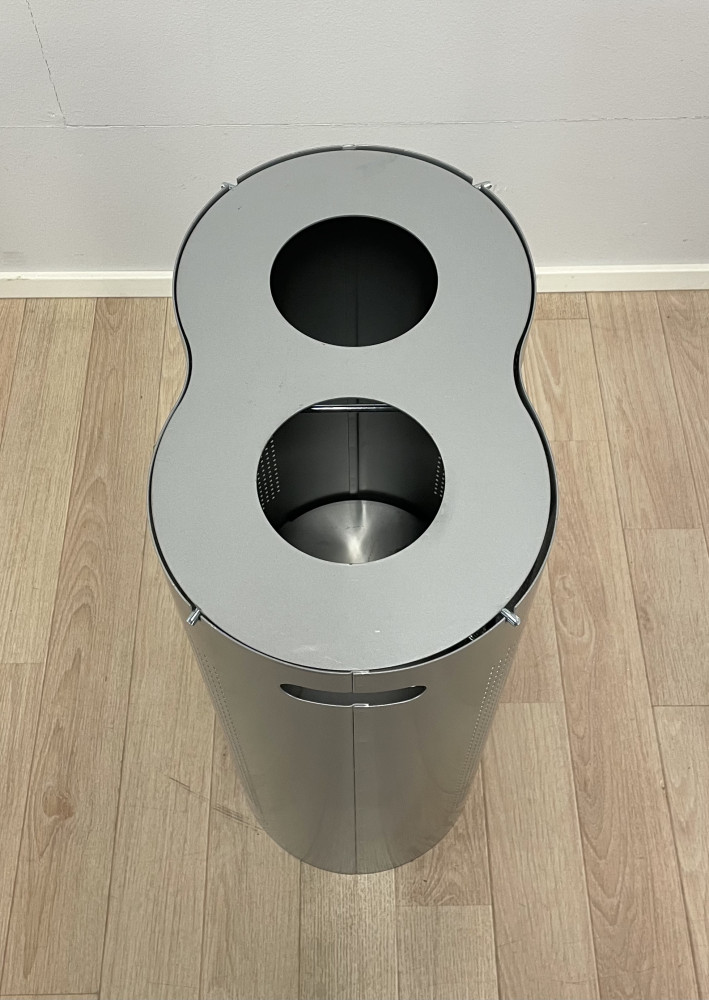 Rei'itetystä metallista valmistettu tyylikäs roskis.Kannen alla jätepusseille kiinnityspanta.Sivuissa nostokahvat.