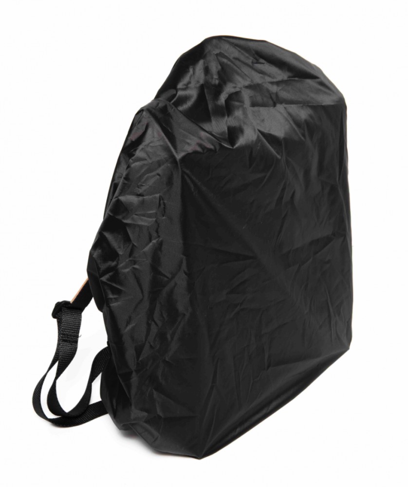 Vedenkestävässä pohjassa integroituna sadesuoja, joka on helposti vedettävissä repun päälle.