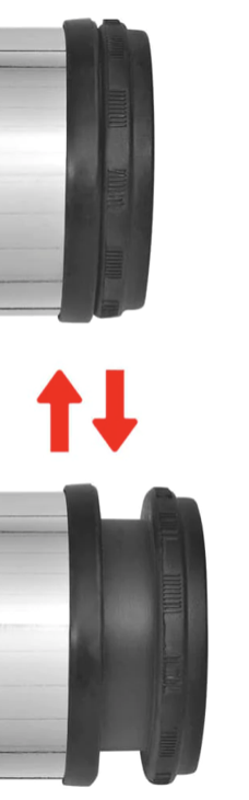 Jalan alaosassa pyöritettävä säätötulppa, säätövara 20 mm.